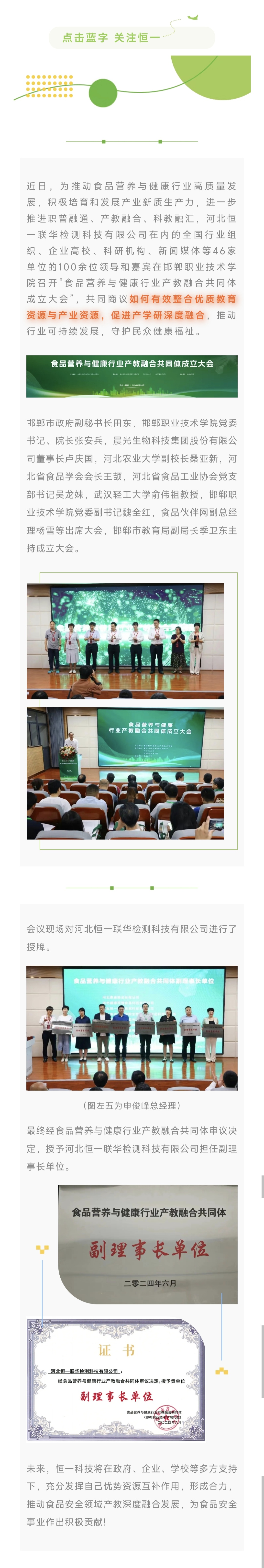 食品營(yíng)養(yǎng)與健康行業(yè)產(chǎn)教融合共同體成立,恒一科技被推選為副理事長(zhǎng)單位