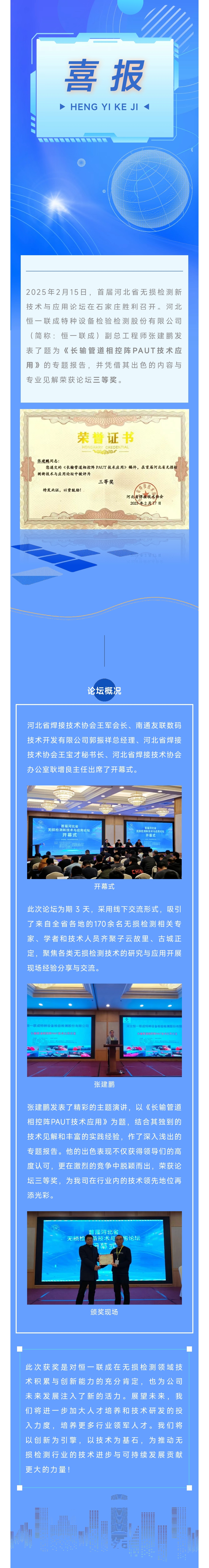 喜報│恒一科技亮相首屆河北省無損檢測新技術(shù)與應(yīng)用論壇并喜獲佳績!